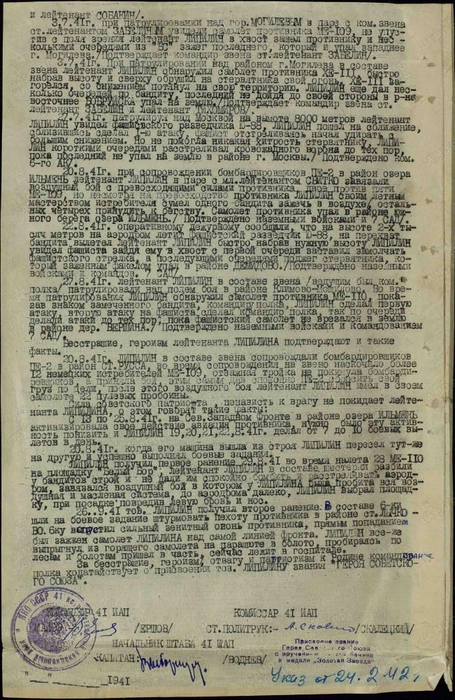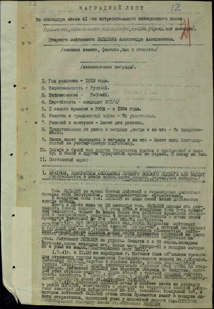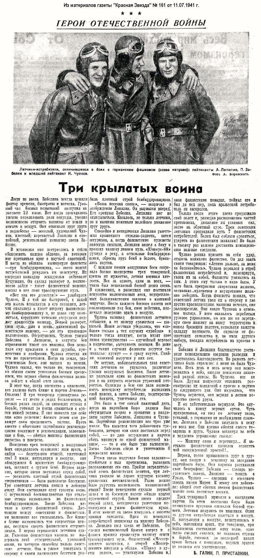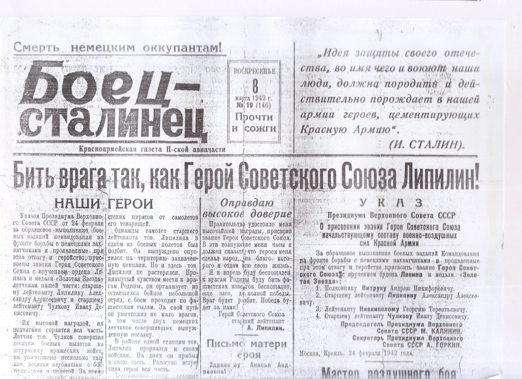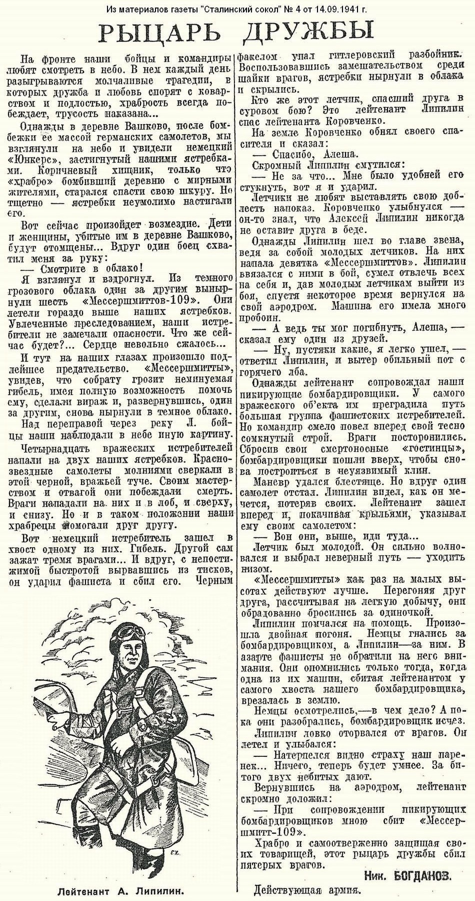 В газете «Сталинский сокол» от 14 сентября 1941 года опубликован очерк